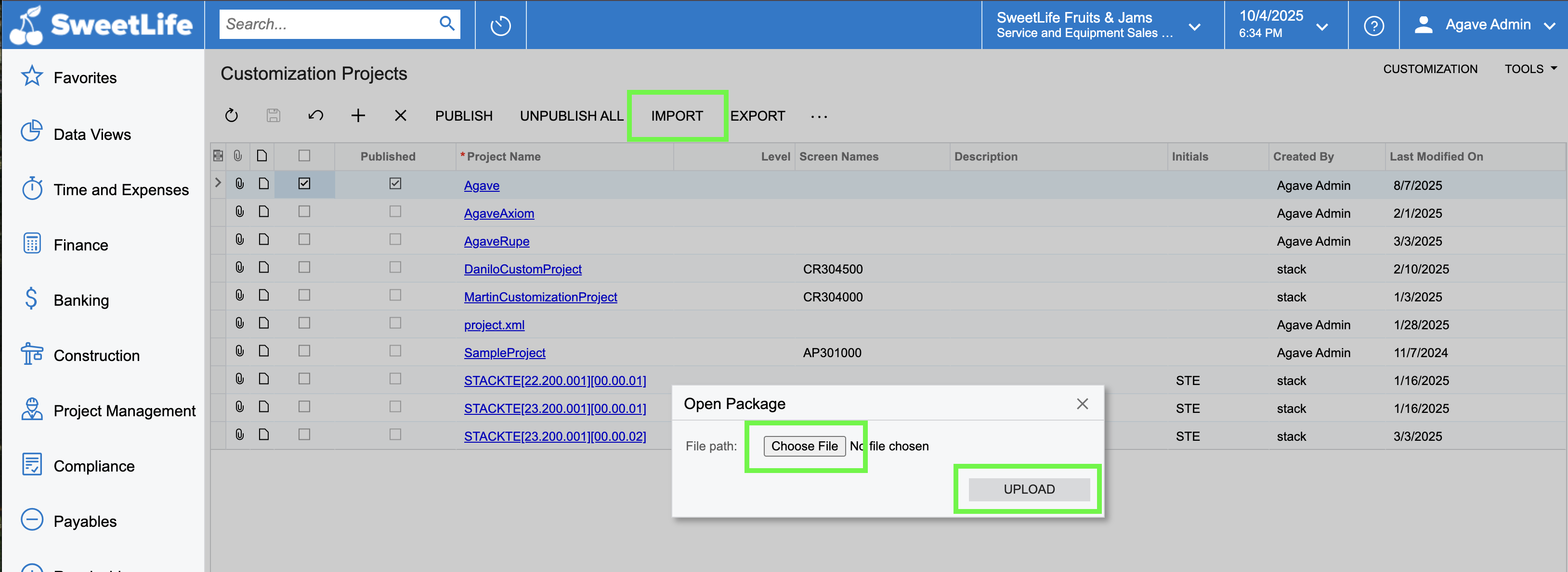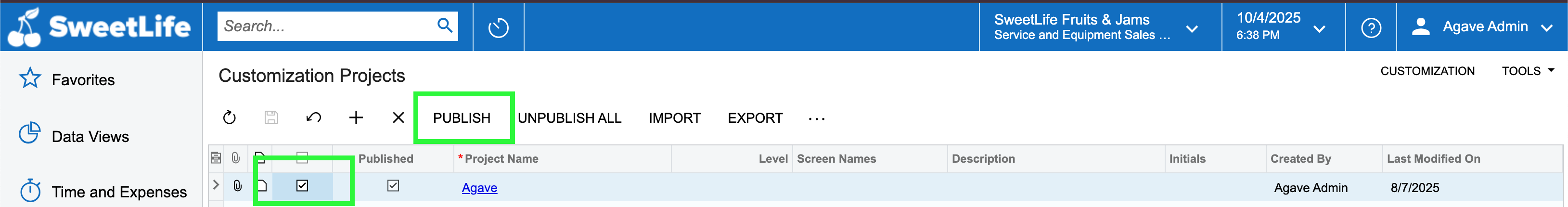 Publish the Agave Customization Package to Acumatica