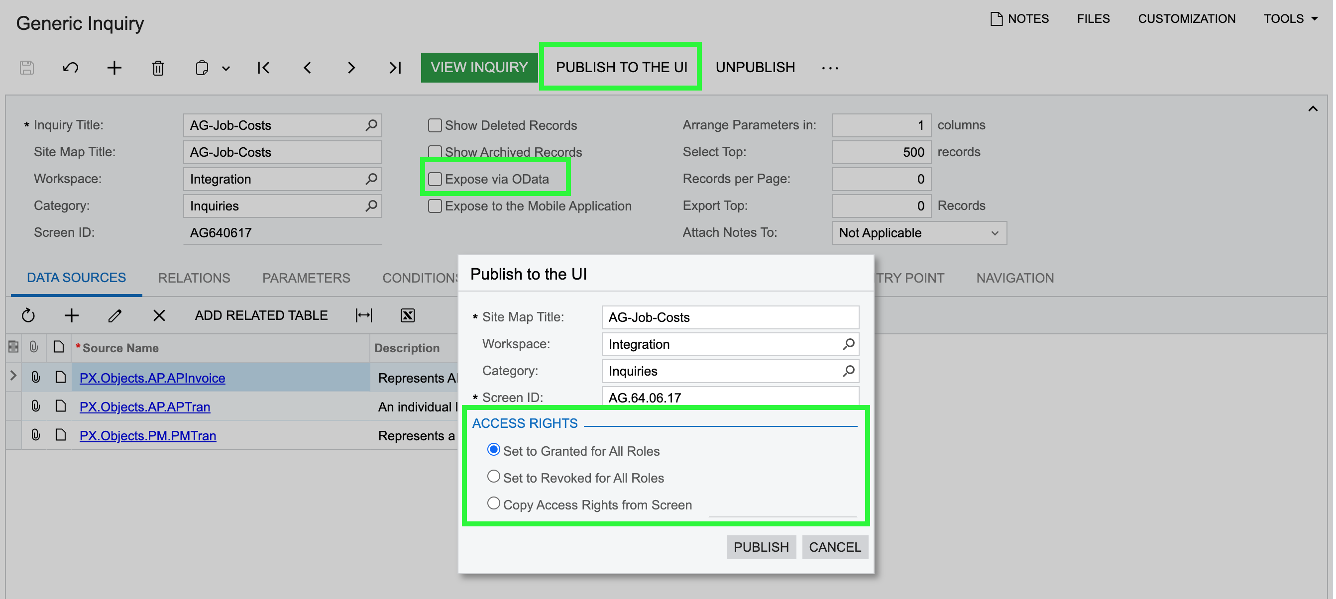 - Under ACCESS RIGHTS select “Set to Granted for All Roles”